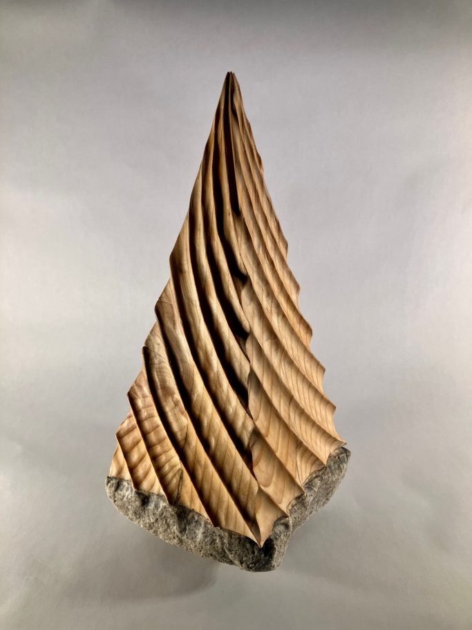 2024 "Antenna no.1", mixed media sculpture series Materials: wood and stone Exhibited at Everywoman Biennial, La Mama Galleria, NY