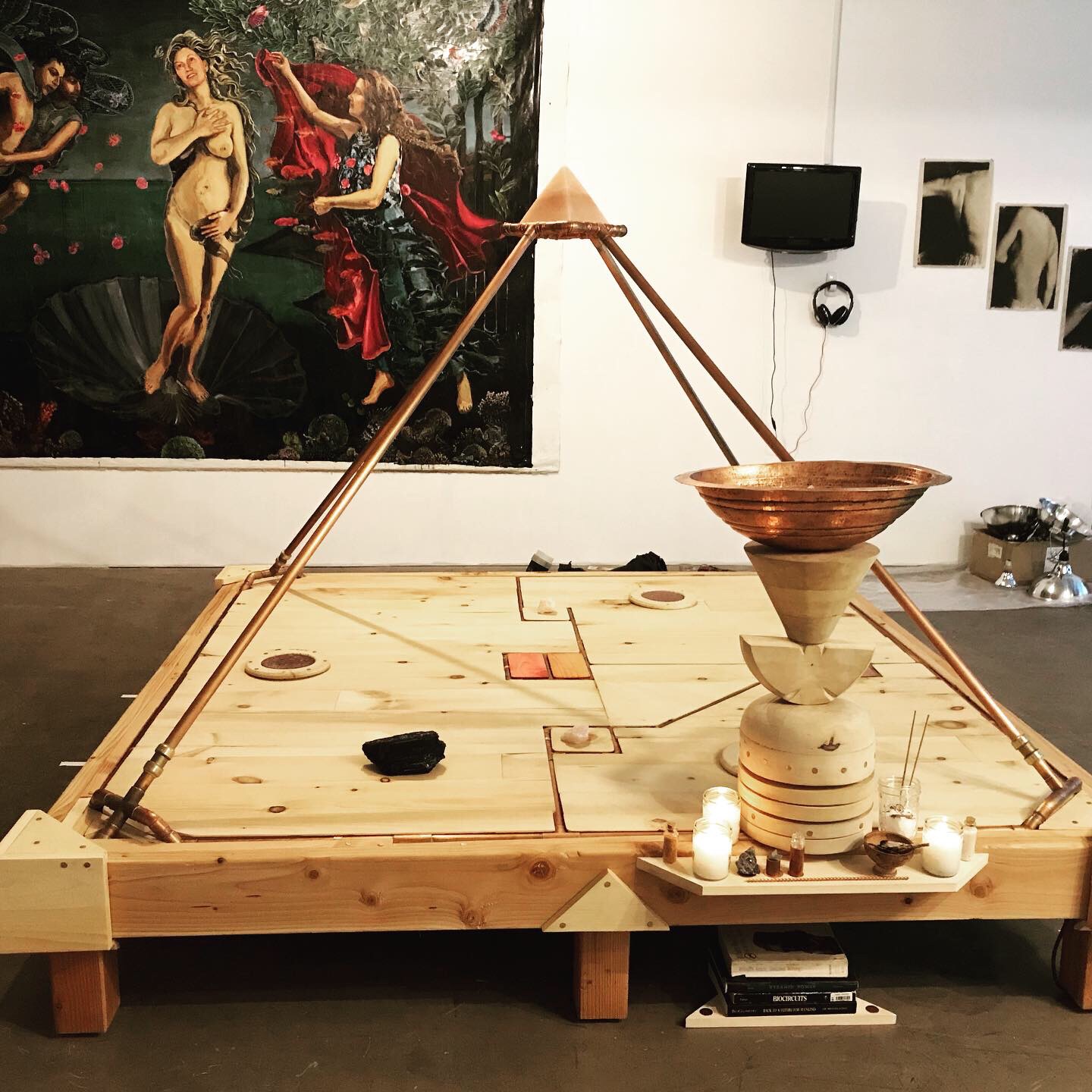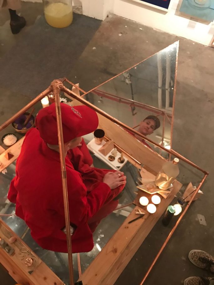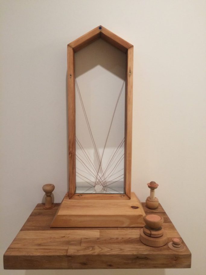 2016 Mixed media sculpture: copper, quartz, lapis, mirror, wood. Exhibited at “Wild Seeds”, Happy Lucky no.1, Brooklyn, NY