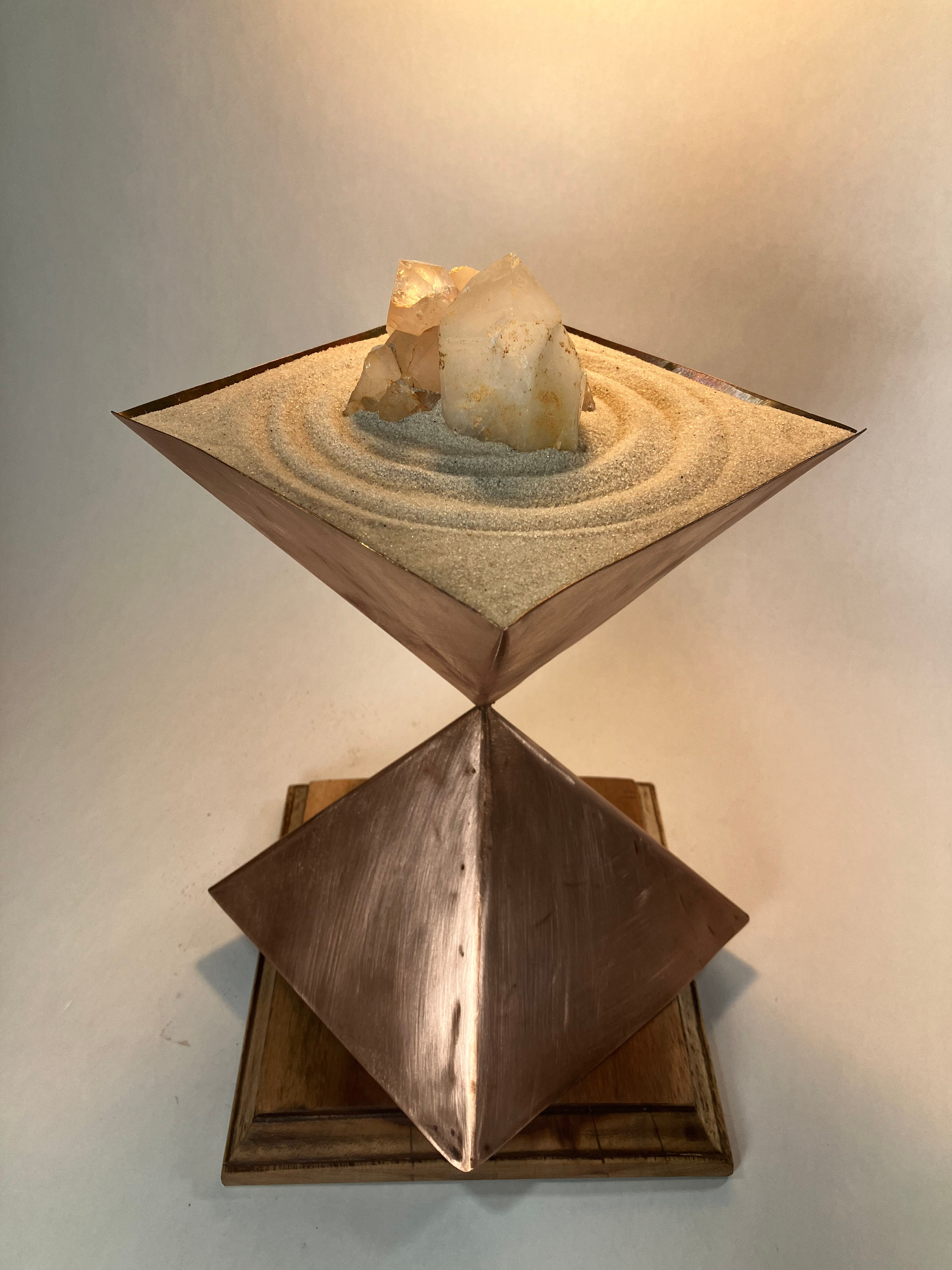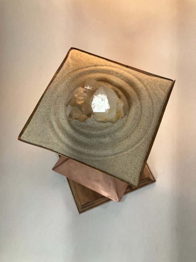 2022 "Zero", mixed media sculpture Materials: sand, quartz, copper, wood. Exhibited at The Bushel Collective, NY