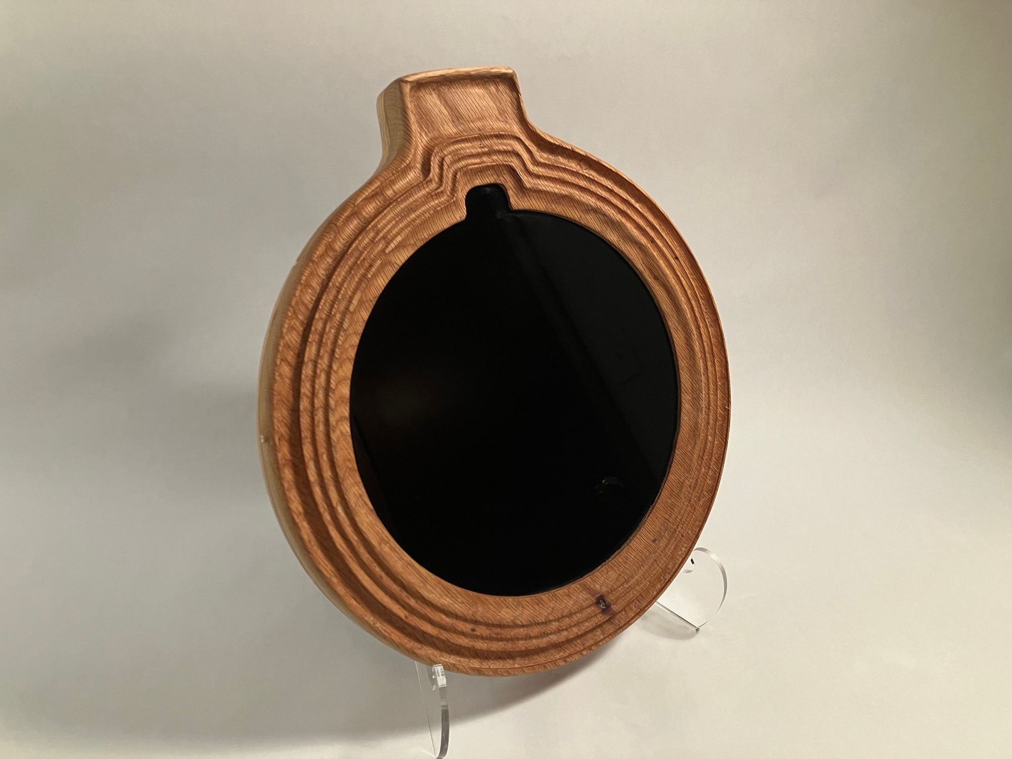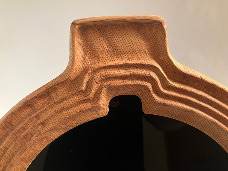 2023 "Connection Point", mixed media sculpture Materials: black obsidian and oak. Exhibited at Urban Glass, NY