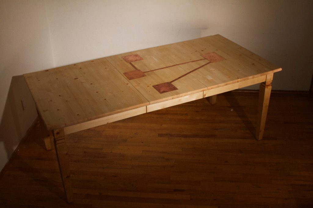 2014 Mixed media sculpture installation Materials: wood, copper. Exhibited at The Whitney Houston Biennial, Brooklyn, NY